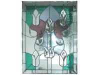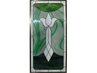 | Rectangle window panel made using bevels, blue green and clear assorted textures of glass. |