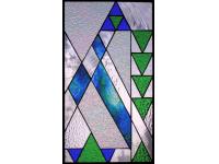 | Bevels surrounded by green baroque and green streaky glass. It is then framed with bevels to refract the sun light into a rainbow of color in the west window that will be its home. |