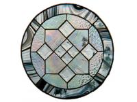 Round suncatcher panel of streaky black and clear glass along with bevels high light this piece